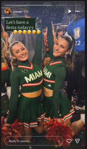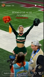 In her next Instagram story, Cao posed alongside a fellow Miami cheerleader as both are hoping for good results in the Fiesta Bowl game.