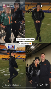 Kylie spent time on the field after the game, and one photo showed her standing next to Carson as he wrapped up one of his most efficient performances of the season.