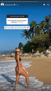 Since her retirement, Katie Johnson has been enjoying a life of relaxation. She is now relaxing on the Nayarit beaches. She was asked in a comment on Instagram how much she is enjoying them. Johnson responded by posting a photo of herself in a cowboy hat and bikini on her Instagram story while saying how much she loves the beaches.