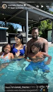 On Thursday, Rosmaly posted several photos from the family’s time inside a pool. Rosmaly wore a blue bikini. In one photo, she can be seen taking in the sunlight while her feet are in the water. In another photo, Severino, Rosmaly, and their two kids were captured candidly.
