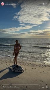 While Nick Castellanos gets plenty of attention, other members of his family also have large social media followings. Notably, his sister, Jacqueline, also gets plenty of attention on Instagram. She posted a photo on her Instagram story on Sunday morning, posing on a beach in a pink bikini with her dog.