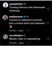 “Turned an awkward moment into a brand deal icon behavior 🔥,” said a gleeful fan