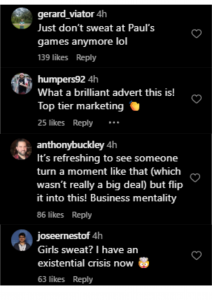 “Just don’t sweat at Paul’s games anymore lol,” wrote someone else