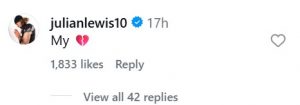 Meanwhile, his teammate, quarterback Julian Lewis, expressed his disappointment at Miller’s departure as he reacted with a sad comment on Instagram that included a heartbreak emoji: