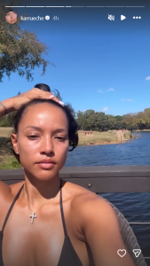 Although neither has confirmed the relationship, social media activity and appearances together have kept fans curious. Adding to the buzz, Tran recently shared an Instagram story showing herself relaxing outdoors in a black bikini, soaking up the sun, and enjoying a carefree day.