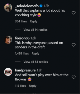 “This is why everyone passed on sanders in the draft,” one fan commented.