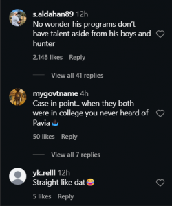“No wonder his programs don’t have talent aside from his boys and hunter,” one fan commented.