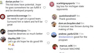 Whilst there was a lot of back and forth amongst fans in the comments section, a few of them also suggested Aidan’s next possible college football destination.