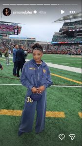 Biles documented the day on her Instagram Stories, featuring her custom gameday outfit. The pictures also highlighted a sweet moment with Owens on the field as the couple shared a kiss on the sidelines.
