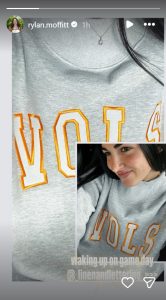 Moffitt posted a close-up picture of her grey crewneck sweatshirt with “VOLS” stitched in orange and white letters.