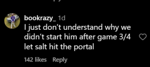 “I just don’t understand why we didn’t start him after game 3/4 let salt hit the portal,” one fan wrote.
