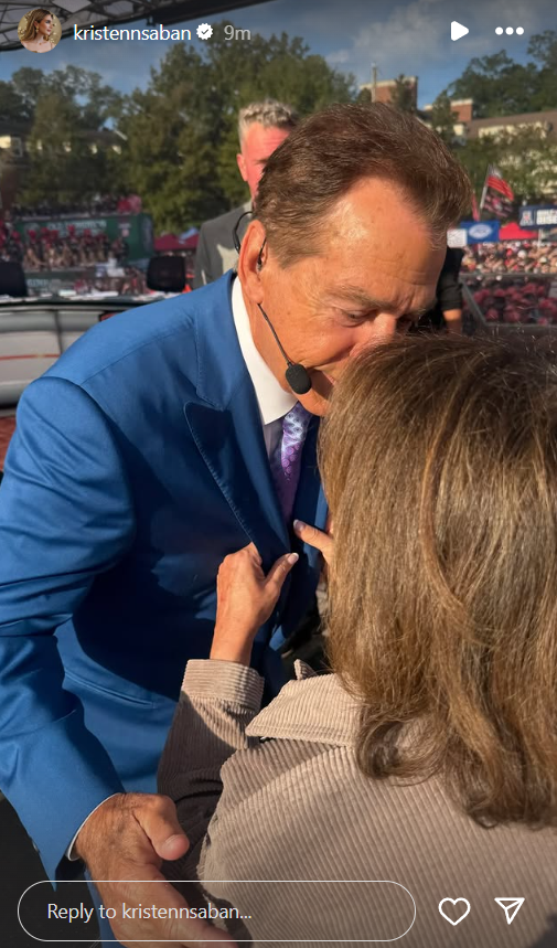 It is College Game Day once again, and Nick Saban is in Georgia as part of the ESPN panel for the Georgia vs. Ole Miss matchup at Sanford Stadium. Ahead of the broadcast, his daughter, Kristen, captured a heartwarming moment between him and his wife, Miss Terry, as she helps him get ready for the show by fixing up his tie.