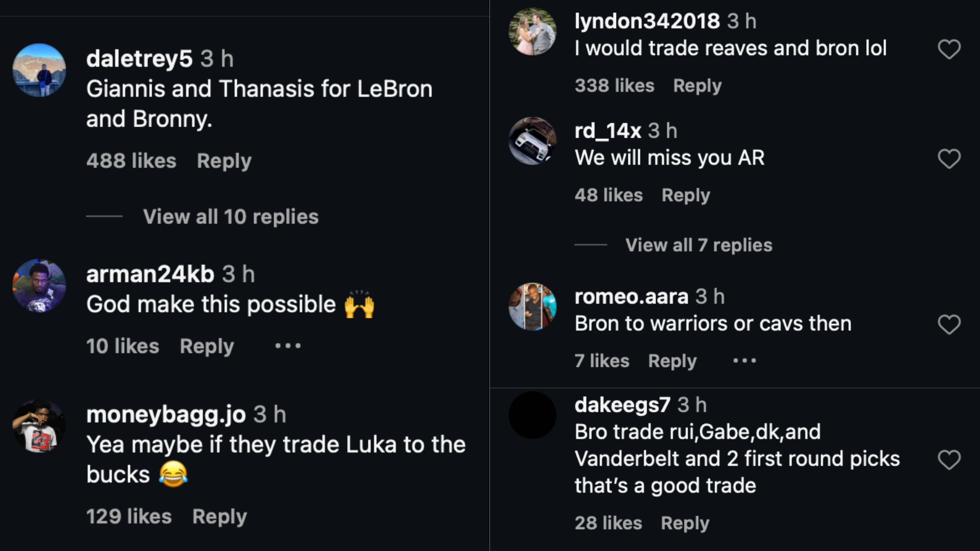 “Yea maybe if they trade Luka to the bucks,” another made a joke.