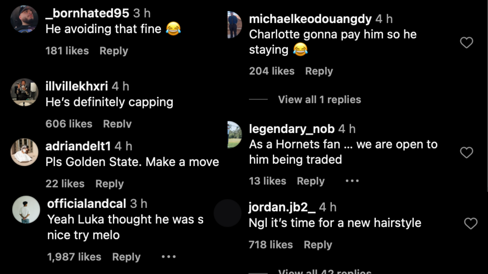 “Yeah Luka thought he was safe too, nice try Melo,” one fan compared Luka Doncic’s trade from Dallas Mavericks to LaMelo Ball’s situation in Charlotte.