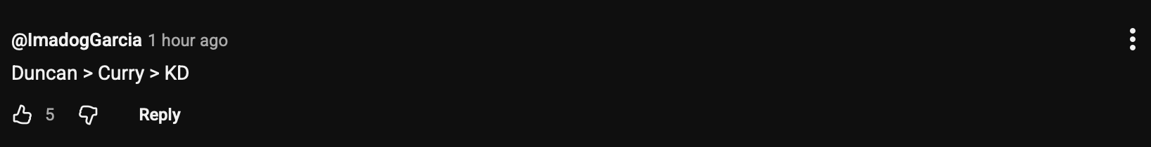 “Duncan > Curry > KD,” one fan voiced their opinion.