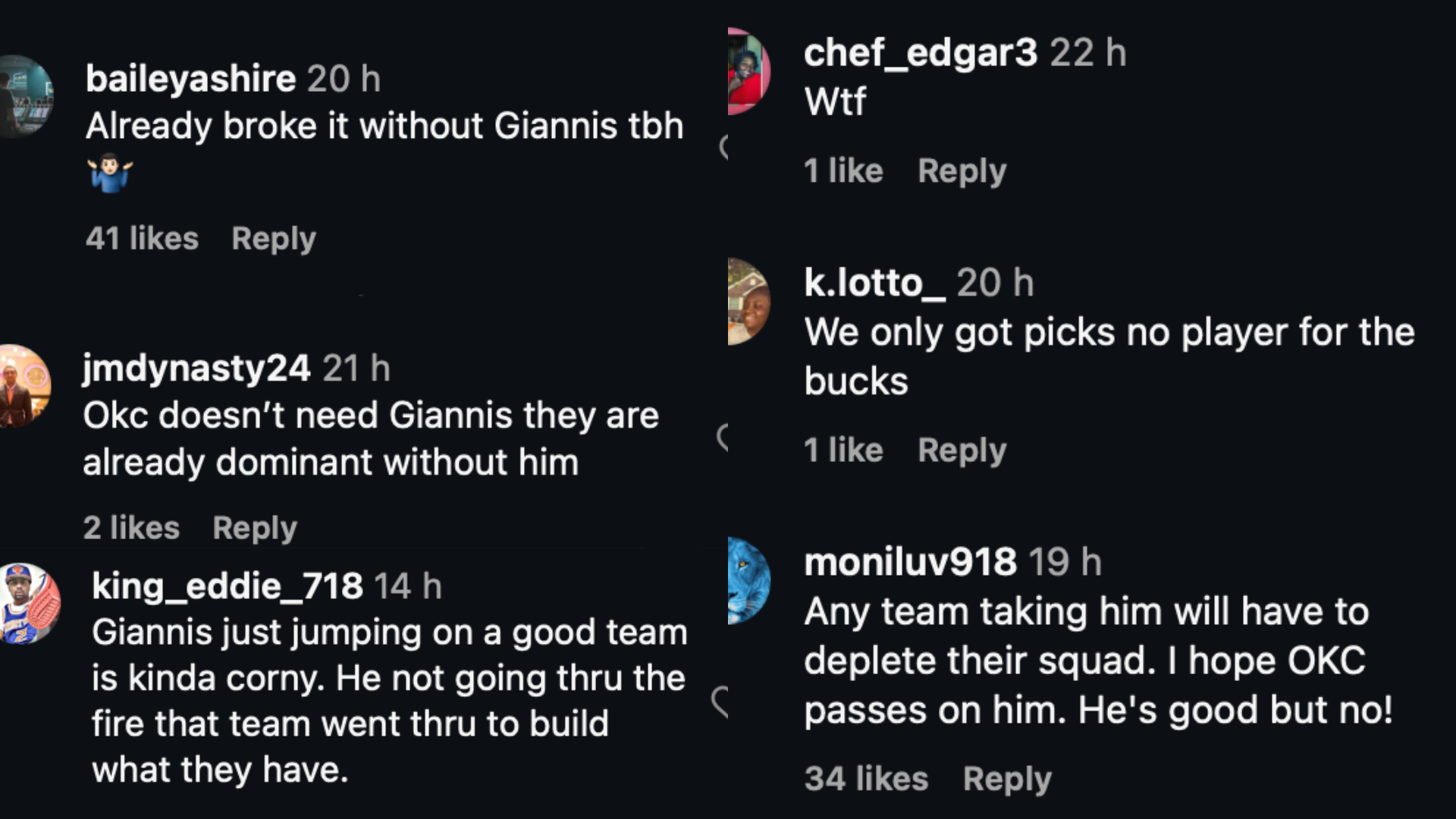 “Okc doesn’t need Giannis they are already dominant without him,” another said.