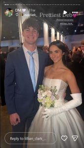 Clark posted a beautiful picture of the two at what looks like a debutante ball. Mestemaker looks sharp in a suit standing besides Clark, who looks beautiful in a white ballgown and gloves. Her sister Ava Clark’s caption reads: “prettiest deb.”