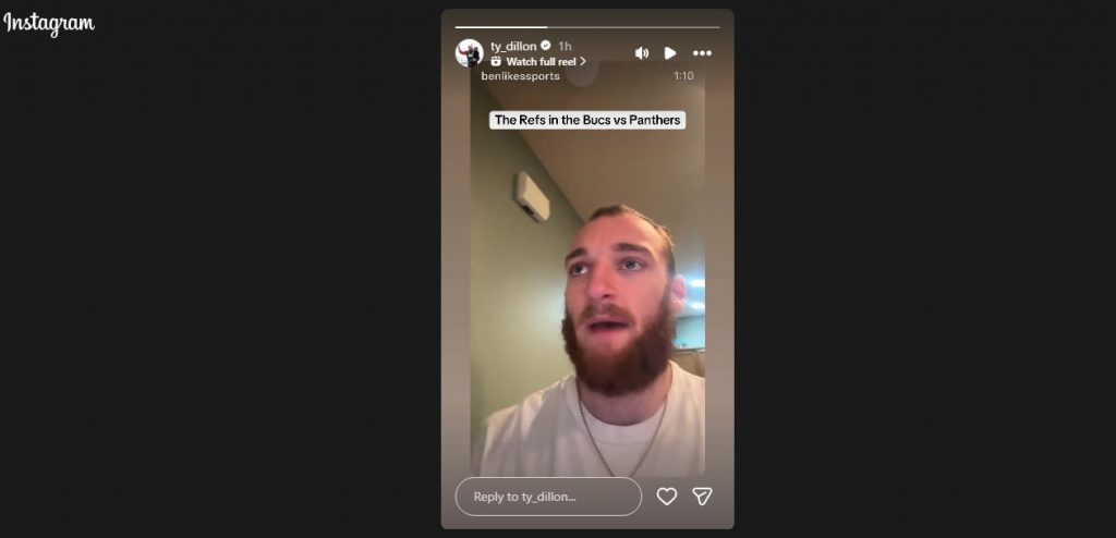 Ty Dillon recently reshared a comical video on social media, mocking the referee after the Tampa Bay Buccaneers beat the Carolina Panthers 16-14 this week. The clip shows blown whistles and slow-motion flag throws. It aimed to criticize several disputed calls that changed the game late against Dillion’s favorite NFL team.