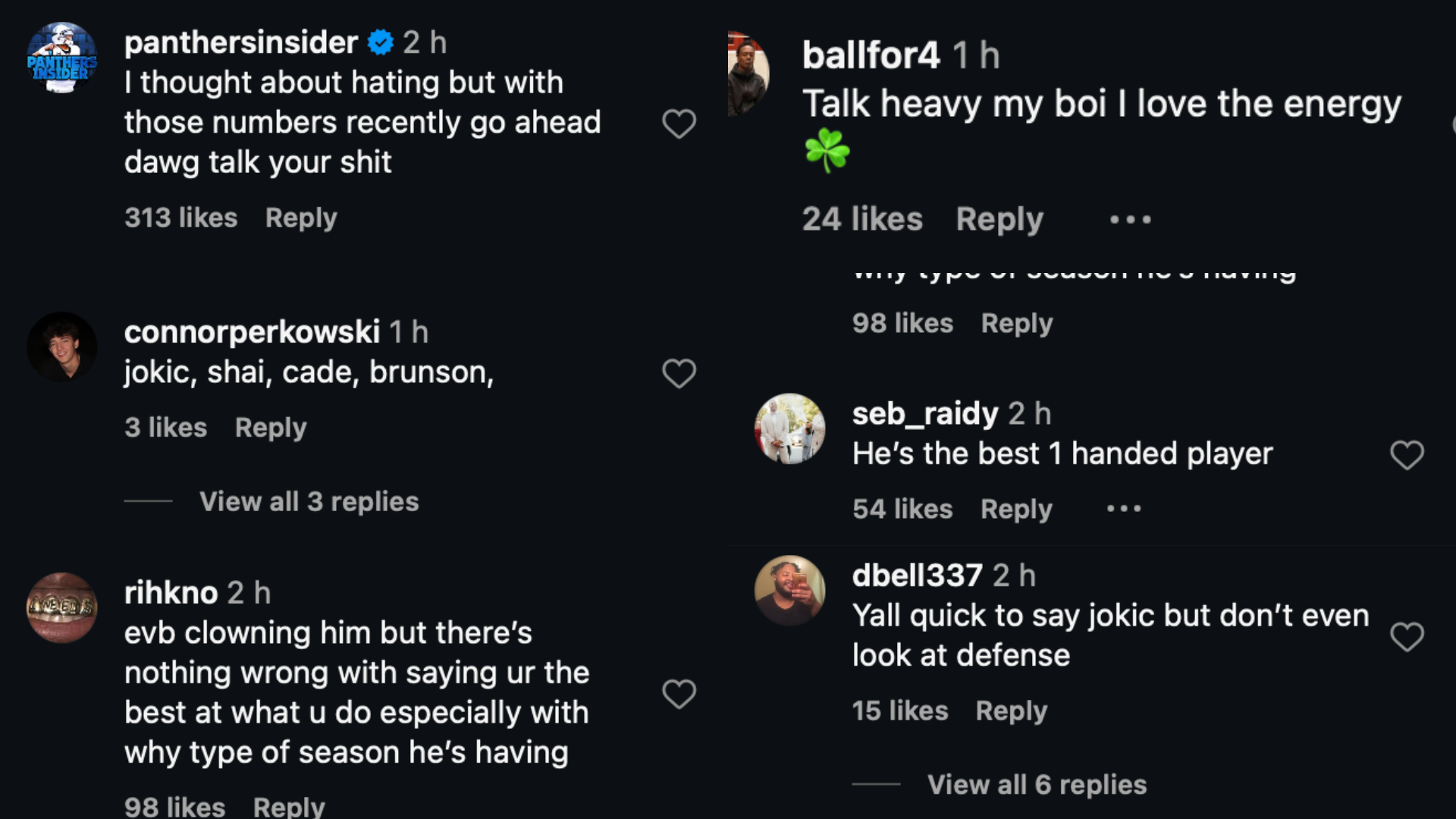 “Evb clowning him but there’s nothing wrong with saying ur the best at what u do especially with why type of season he’s having,” another commented.