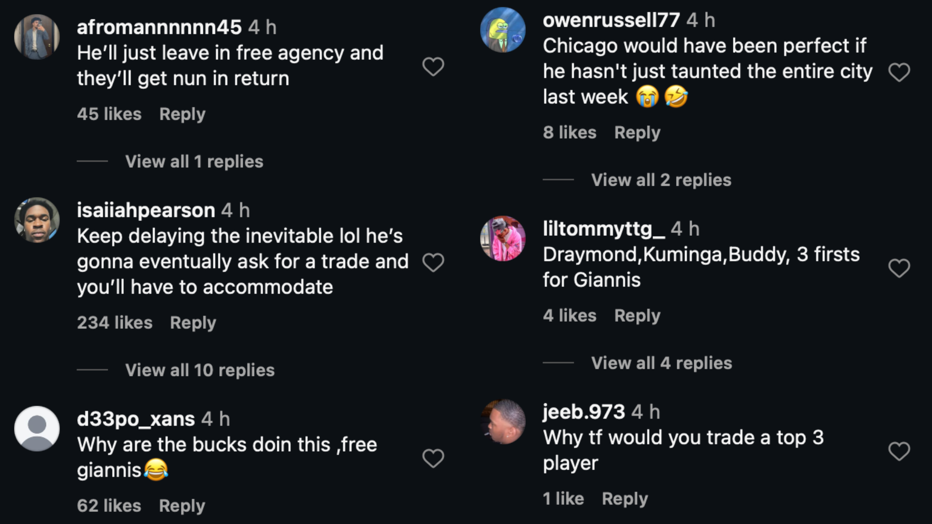 “Why are the bucks doin this, free Giannis,” another demanded.
