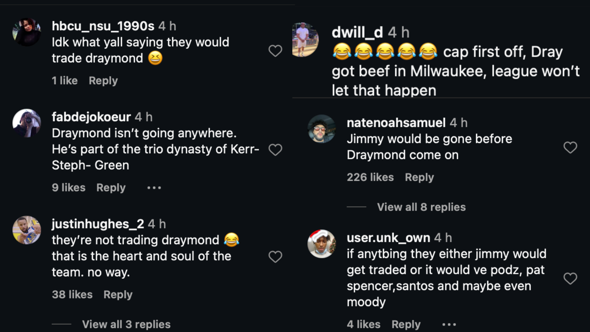 “They’re not trading Draymond. That is the heart and soul of the team. No way,” another stated.