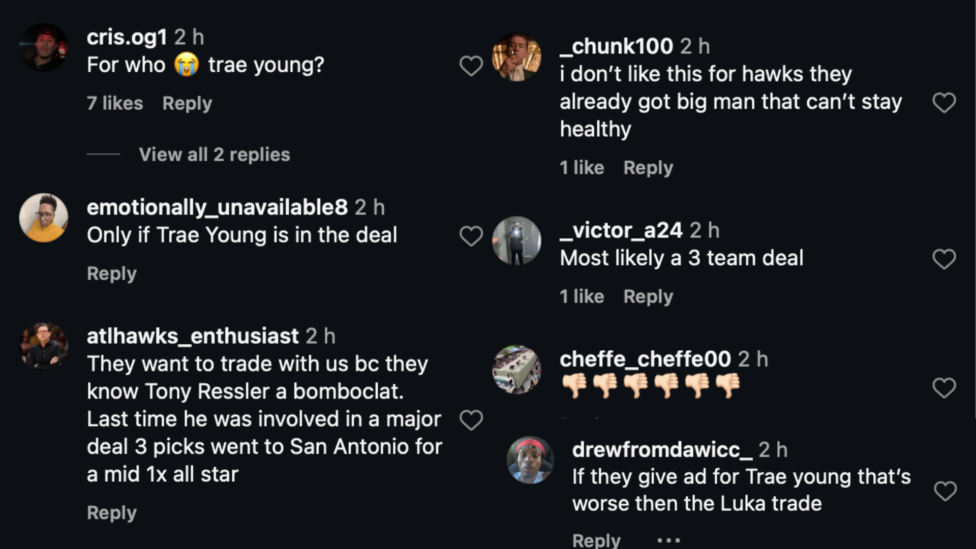 “I don’t like this for Hawks they already got big man that can’t stay healthy,” another said.