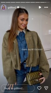 Gabrielle showed her support for the Eagles by even posting her outfit on her Instagram story, which saw her donning a fashionable denim look with an olive green jacket.