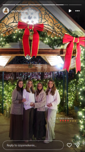 Izzy posted an Instagram story from The Heights Church in Denver, where she is rejoicing and singing several Christmas choruses and tunes. Next up, she went to Denver Botanic Gardens, where she captured the beautiful decorations for the upcoming holidays. She went there with her family, including her parents, siblings and their kids. They all posed for a group photo under a Christmas-decorated architecture.