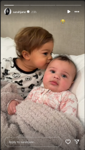 Sarah dropped an adorable short clip of both girls with MJ kissing the forehead of newborn Aurora. Sarah added an emotional crying emoji to express love for the love between the two sisters.