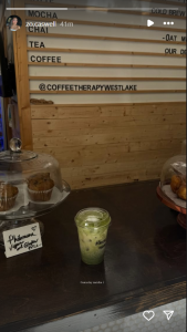 On Sunday, Zo shared that before the game she made a stop at a local café, Coffee Therapy Westlake, where she enjoyed an iced matcha latte. She captioned the post: