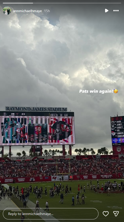 His wife, Ann Michael Maye, traveled with the team to Tampa and witnessed the Patriots win. She then celebrated on her latest Instagram story, saying that the Pats have won again.