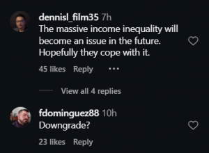 “The massive income inequality will become an issue in the future. Hopefully they cope with it,” one fan added.