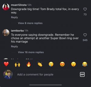 “Downgrade big time! Tom Brady total fox in every way,” one fan wrote.