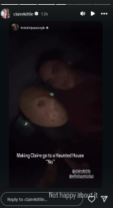 Kristin shared a short clip from there, in which Claire seems to be getting scared by Kristin’s antics inside the haunted house. In the caption, Kristin revealed that she made Claire go into the haunted house. In response, Claire reshared the clip, writing:
