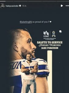 Ferguson was the Cowboys’ nominee for the 2025 Salute to Service Award in recognition of outstanding service to the military. Cavinder took to Instagram to share that, posting for the public, saying, “So proud of you!!”