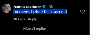 Knowing the result, Hanna Cavinder made herself into the comments section of the above post to joke:
