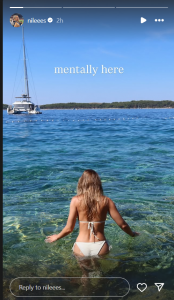 On Tuesday, Niles uploaded a photo from that vacation. In the photo, she’s captured from behind entering the waters in a white bikini. A yacht can be seen in the distance. She captioned the post: