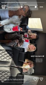 Haley, in a subsequent story, posted a picture with her sister Hanna and their friends while en route, potentially to the Thanksgiving game.