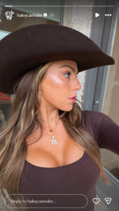 So, while the Cowboys are getting ready for their last home game of the season, Cavinder followed her game day tradition. She posted pictures on her Instagram story, wearing a stylish outfit with a cowboy hat.