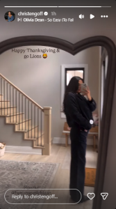 “Happy Thanksgiving & go Lions 🦁,” wrote Christen Harper in the story.