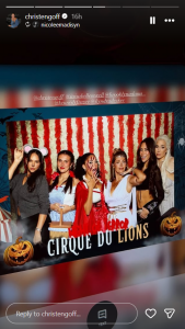 The event, titled “Night of Terror: Cirque Du Lions,” featured extravagant costumes and themed decorations. Christen shared several moments from the evening on her Instagram story, posting photos and videos of the two enjoying the celebration.