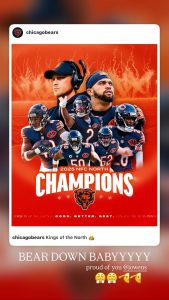 Jonathan Owens and the Chicago Bears just won the NFC North, and Simone Biles is celebrating. The multiple-time Olympic gold medalist and wife of the Bears star safety took to her Instagram story this Saturday night to celebrate her husband’s team clinching the AFC North’s divisional title for the 2025 season.