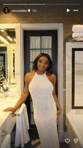 The gymnast shared several photos and clips from the event on her Instagram stories, showing off her look and the venue’s glamorous setup. Among the pictures were shots of the stage and her table, giving fans an inside look at the celebration honoring influential women.
