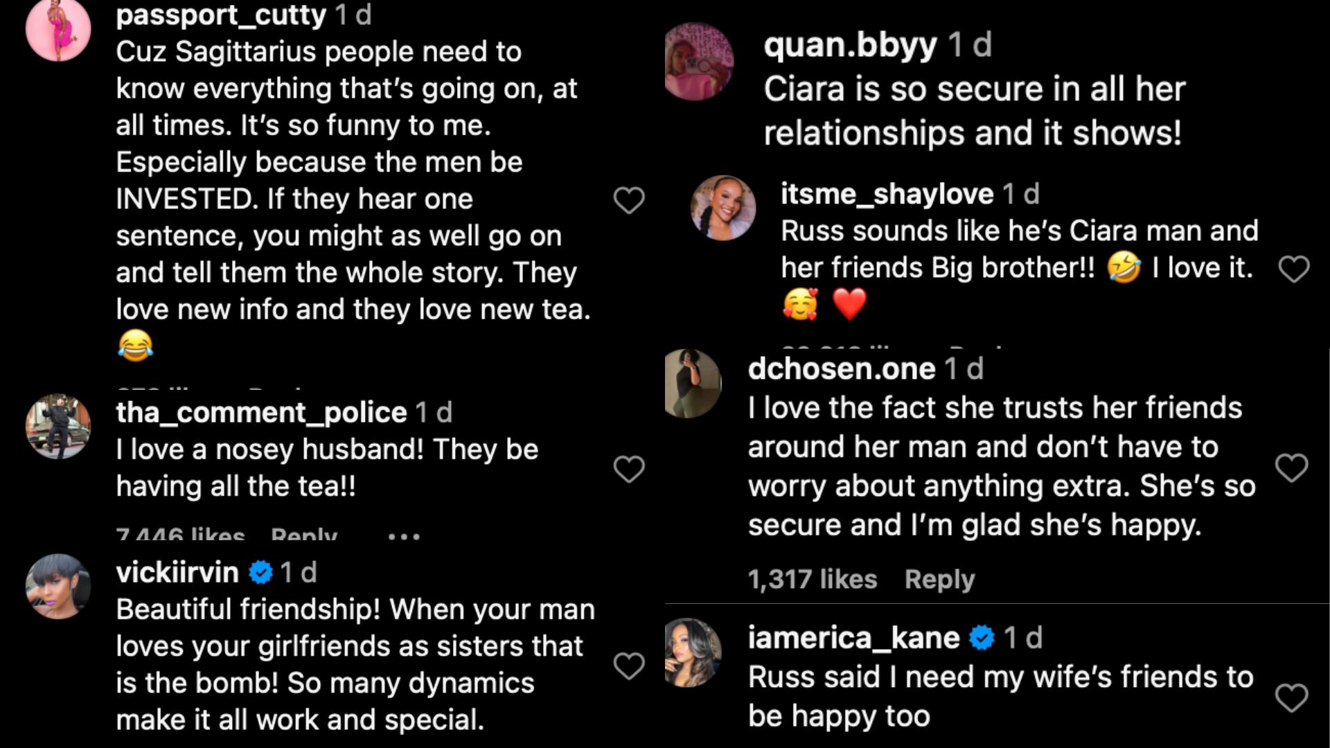 “Ciara is so secure in all her relationships and it shows,” another claimed.