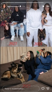 In her next Instagram story, she shared a festive photo collage, featuring side-by-side looks from 2023, 2024, and 2025. In the first two years (2023 and 2024), they had one German Shepherd, while in the most recent display, they had two more young dogs, suggesting they added two more members to their family.