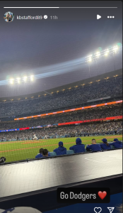 On Monday, Kelly dropped a photo of the game from inside the stadium. Her caption made it clear that she was there to support the Dodgers: