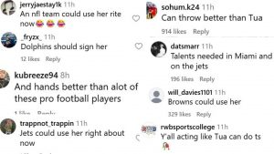 “Can throw better than Tua (Tagovailoa),” stated a fan.