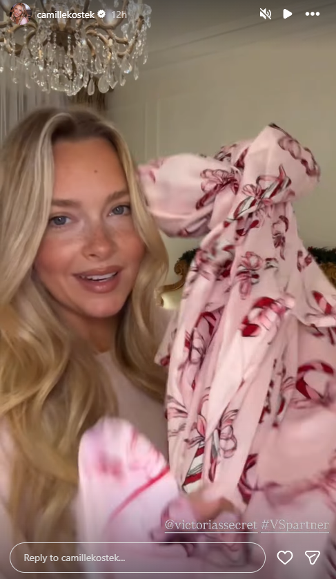 Since leaving the New England Patriots, Camille Kostek has been modeling for the likes of Sports Illustrated and Victoria’s Secret. As Christmas approaches, she has teamed up with Victoria’s Secret once again, as she models in a pink Christmas-themed pajama with candy cane prints. Since this is Victoria’s Secret, she also wore one of the fashion brand’s signature lingerie.