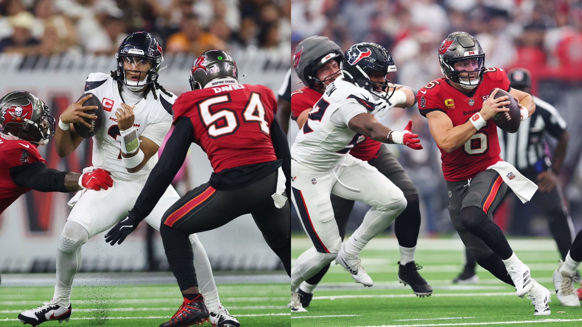 However, he isn’t the only one who has been heavily sacked on this Monday Night Football. Houston’s defense has gotten a hold of Tampa Bay’s Baker Mayfield on four occasions.