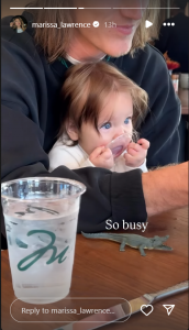 In another glimpse, she shared a photo of Shae sitting on Lawrence’s laps. The quarterback is fidgeting with his smartphone to which Shae is giving a wide eye-look. Marissa joked: